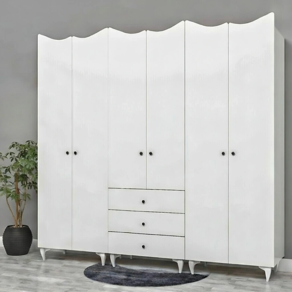 Modern ve özgün tasarımıyla, odanıza aydınlık bir görüntü kazandıran 6 Kapılı Kare Kulplu Gardrop modelimiz şimdi stoklarımızda. Kullanışlı askılıklar ve çekmece detaylarıyla kullanım rahatlığı sağlayan bu gardırop, kaliteli malzeme ve sağlam işçilikle üretilmiştir. Odanızın ölçülerine uygun, istediğiniz ebatta üretim imkanı ve online ödeme fırsatı ile sahip olabilirsiniz.