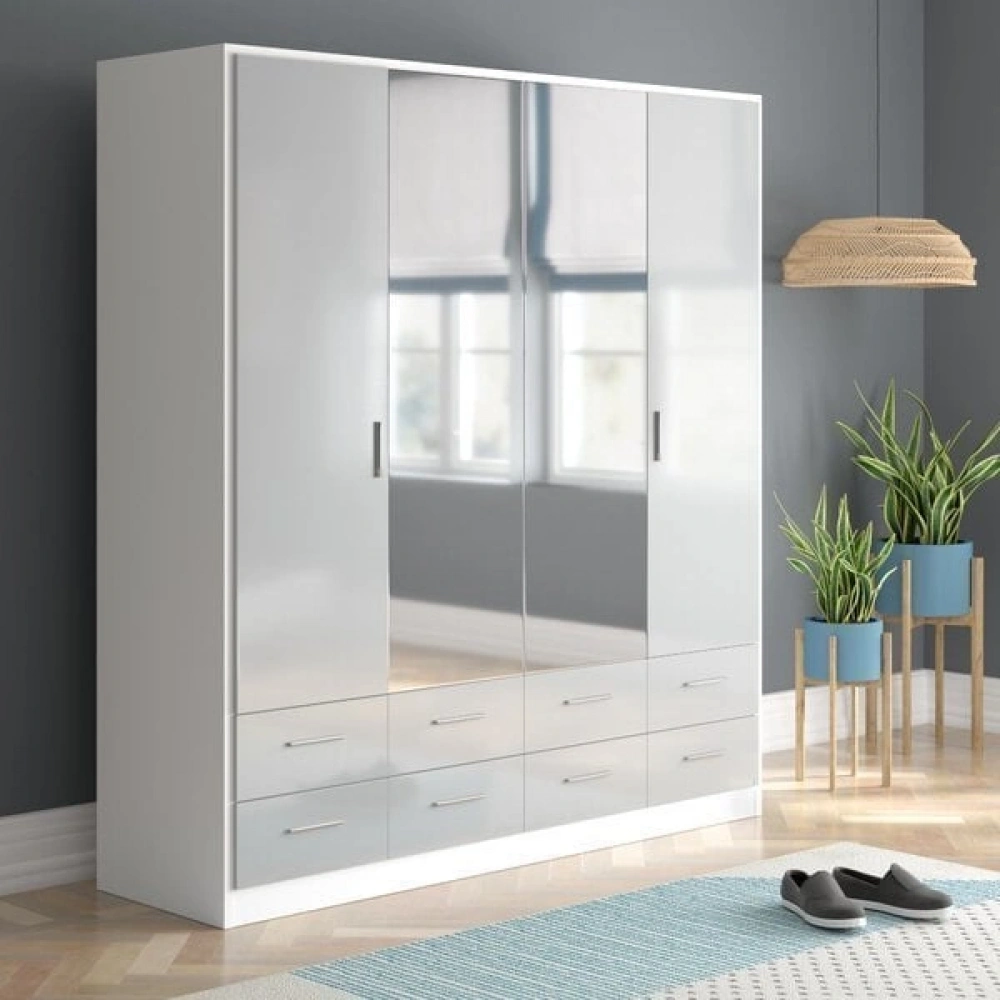 Modern ve özgün tasarımıyla, odanıza aydınlık bir görüntü kazandıran 4 Kapılı 6 Çekmeceli Gardrop modelimiz şimdi stoklarımızda. Kullanışlı askılıklar ve çekmece detaylarıyla kullanım rahatlığı sağlayan bu gardırop, kaliteli malzeme ve sağlam işçilikle üretilmiştir. Odanızın ölçülerine uygun, istediğiniz ebatta üretim imkanı ve online ödeme fırsatı ile sahip olabilirsiniz.