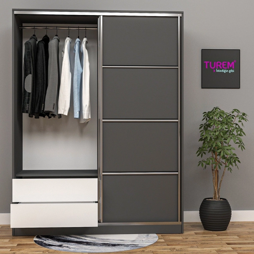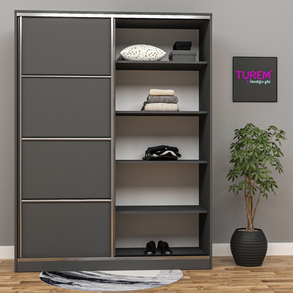 Kurşuni Sürgülü Gardırop