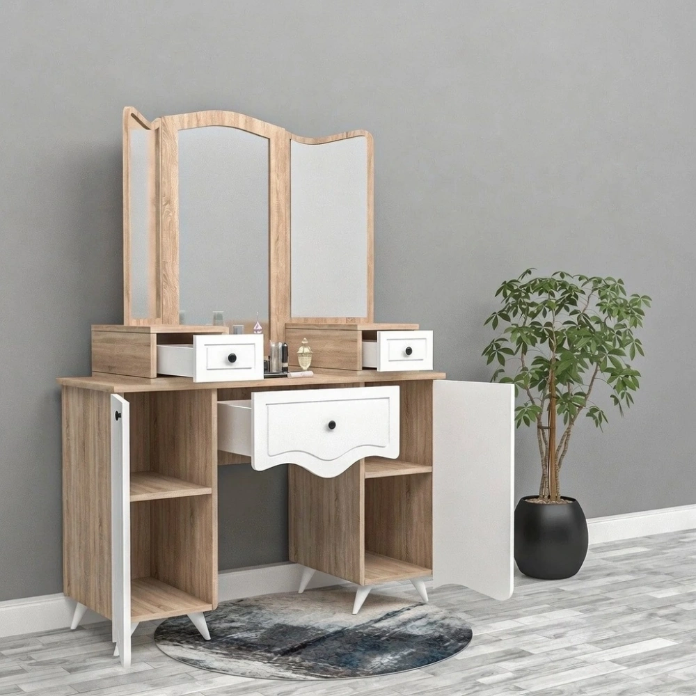 Kıyafetleri depolamanın yanı sıra ev tekstili ürünlerini de saklamak için kullanılan makyaj masası, son dönemlerde birer tasarım harikasına dönüşmeye başlıyor ve akıllı tasarımlarıyla göz dolduruyor. Dar alanlara özel çekmeceli, klasik menteşeli kapaklı veya çekmecelerle zenginleştirilmiş olan makyaj masası... İhtiyacınıza ve yaşam alanlarınızın ölçülerine en uygun makyaj masası modelleri Turgay Usta İle Marangozhaneden de satışta.'da satışta. Üstelik isteğinize göre ölçülendirme ve renklendirme fırsatları da sizleri bekliyor.