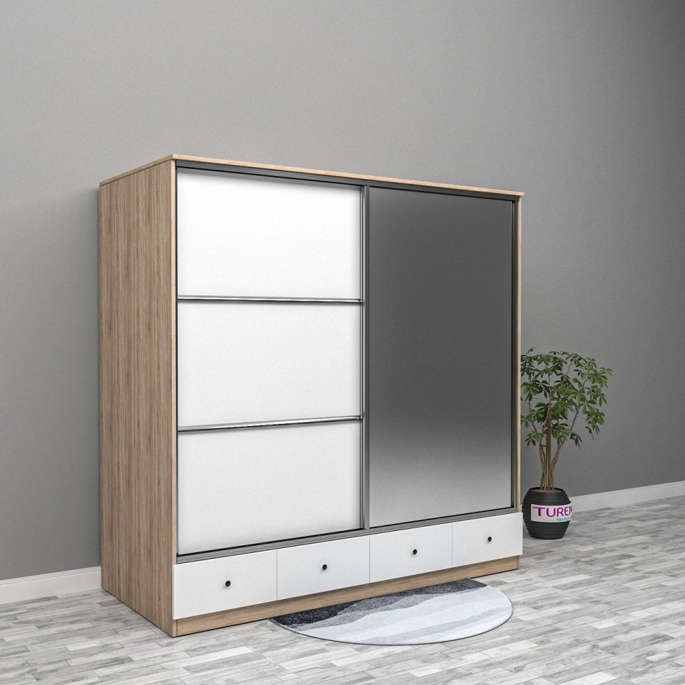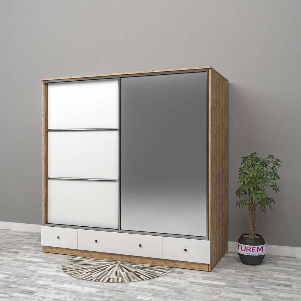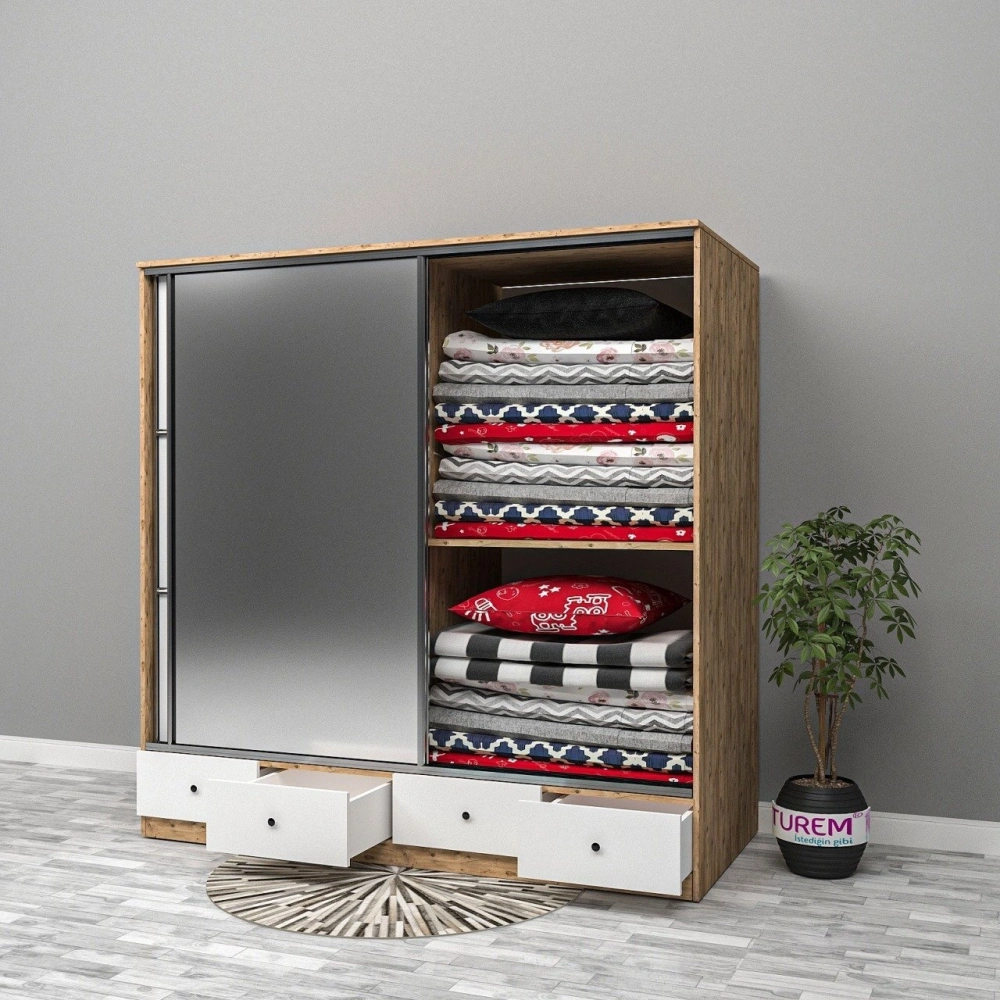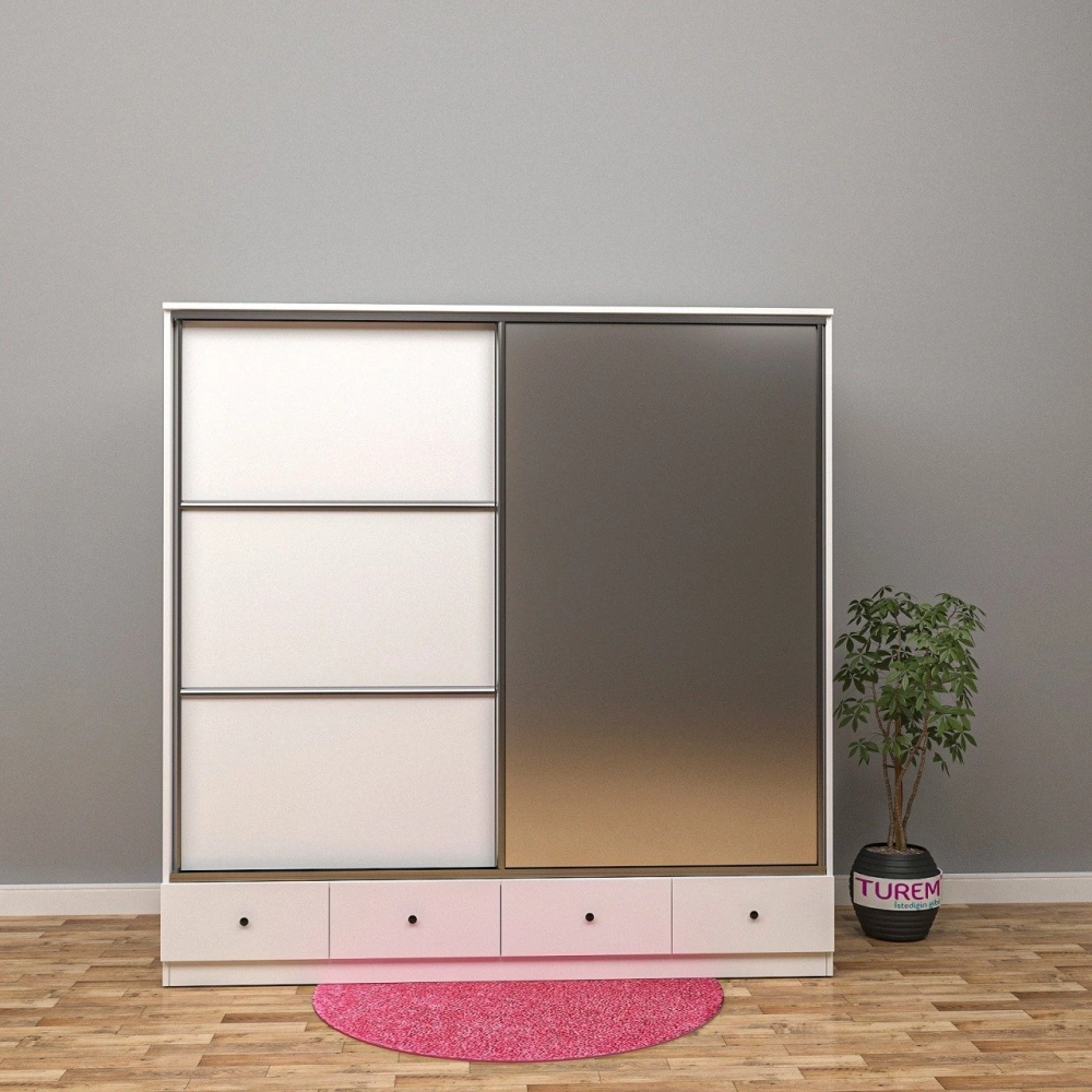 Sweety Sürgülü 2 Kapaklı 4 Çekmeceli Yüklük Dolap