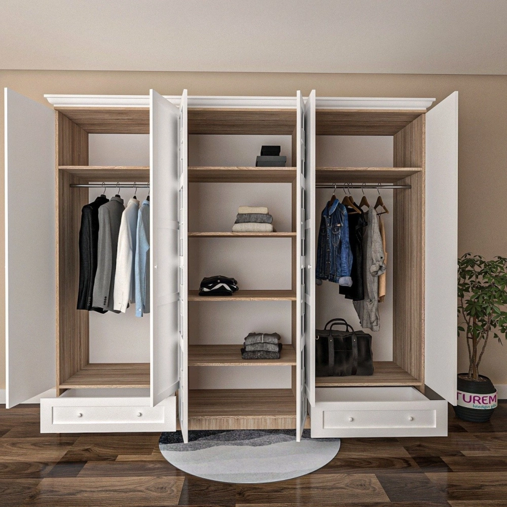 Modern ve özgün tasarımıyla, odanıza aydınlık bir görüntü kazandıran Winter 6 Kapılı Gardrop modelimiz şimdi stoklarımızda. Kullanışlı askılıklar ve çekmece detaylarıyla kullanım rahatlığı sağlayan bu gardırop, kaliteli malzeme ve sağlam işçilikle üretilmiştir. Odanızın ölçülerine uygun, istediğiniz ebatta üretim imkanı ve online ödeme fırsatı ile sahip olabilirsiniz.